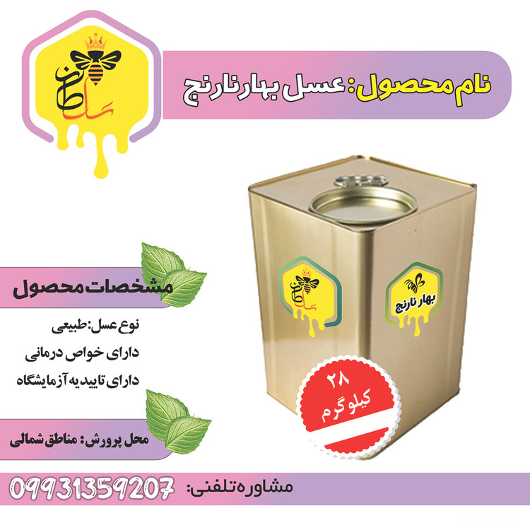 عسل طبیعی بهار نارنج مارک سلطان یک حلب ۲۸ کیلوگرم